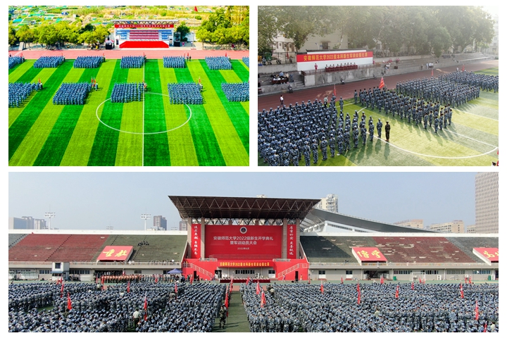 9月30日上午,学校在花津校区、赭山校区、天门山校区分别举行2022级本科新生军训会操比赛。校党委常委、副校长陆林,校党委常委、纪委书记、监察专员周新发,校党委常委、副校长任永,武警芜湖支队上校支队长朱文超、中校副支队长高强、少校副主任褚正,军训工作领导组成员和各营教导员分校区出席。全体指导员、教官、助训教官和近8000名本科新生在各校区参加了活动。