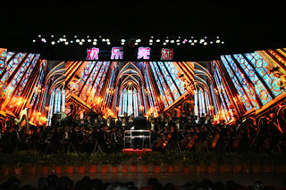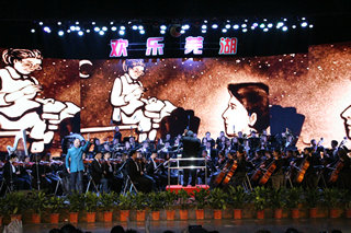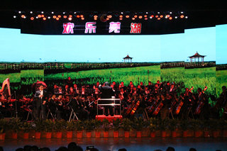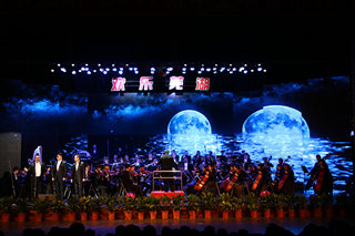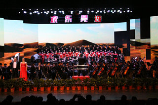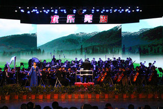 “管弦和鸣,盛世交响”。演出伊始,灯光骤暗,一曲欢快的管弦乐合奏《春节序曲》拉开交响音乐会帷幕。女声独唱《一杯美酒》、《风帆》、男声三重唱《今夜无人入睡》、男声独唱《父亲的草原母亲的河》、《母亲》,管弦乐合奏《轻骑兵序曲》等曲目,将演出推向一个又一个高潮,让观众领略到经典作品的永恒魅力。最后一首雄浑深情的合唱《祖国颂》为整场演出画上了圆满句号,获得了观众们潮水般的掌声。演出间隙,主持人还普及了交响乐、乐器等方面的知识。