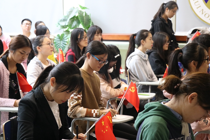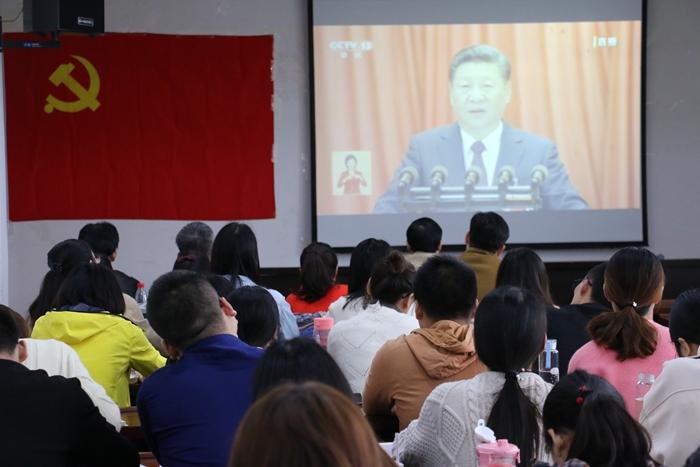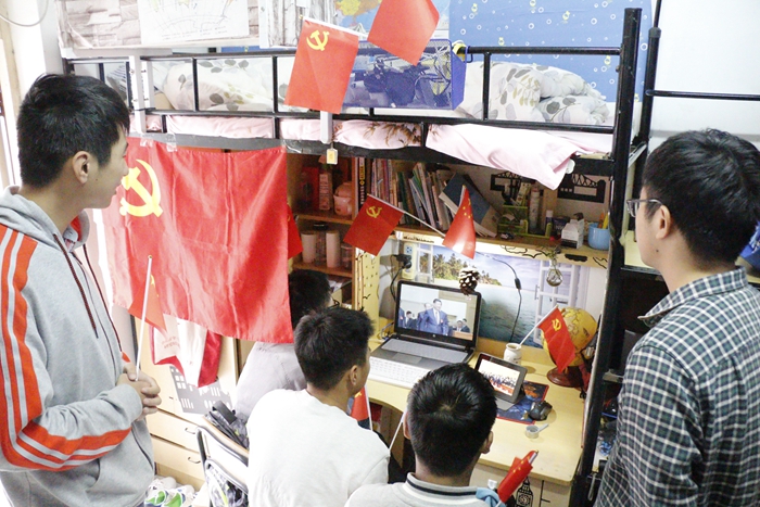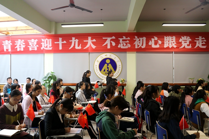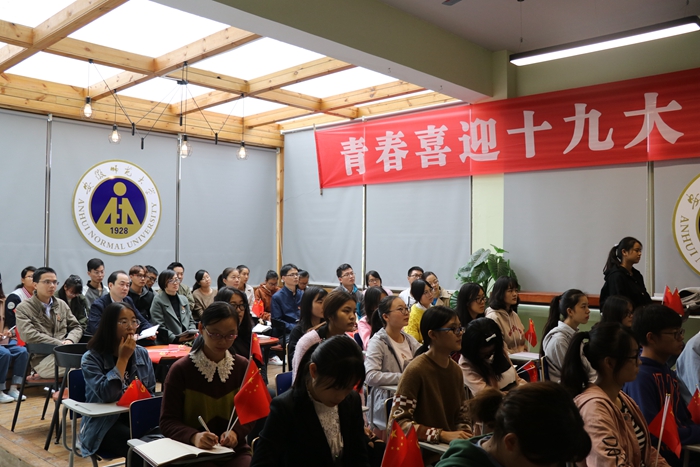 青通社讯 10月18日上午,举世瞩目的中国共产党第十九次全国代表大会在北京人民大会堂隆重开幕。上午9时,安徽师范大团委组织团员青年学生骨干收看党的十九大开幕式,同学们兴奋地舞动着手中的党旗、国旗。大家的目光聚焦在屏幕上,认真观看并聆听了习近平总书记代表党的第十八届中央委员会作的工作报告,报告中总书记全面总结了党的十八大以来全国人民在党的领导下取得的辉煌成就,客观分析了世情、国情、党情,为今后的发展指明了方向。同学们边听边做笔记,并不时报以热烈的掌声。