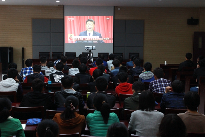 (校团委组织团员青年学生骨干集中收看十九大盛大开幕)