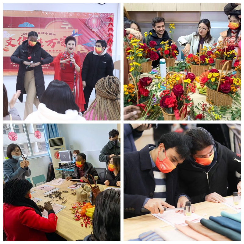 2月3日是农历正月初三,国际教育学院教师活动室内张灯结彩、灯笼高挂。由芜湖市文化和旅游局、安徽师范大学国际教育学院主办,芜湖市文化馆(非物质文化遗产保护中心)承办的“文化进万家 2022视频直播中国年”活动在这里举行,以一场文艺展演和非遗体验的方式与国际教育学院的留学生们一起近距离解锁非遗魅力,感受中国传统文化年。安徽省文化云和欢乐芜湖抖音对活动进行了直播,当晚的安徽新闻联播也对活动情况进行了报道。