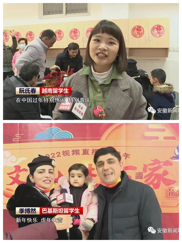 来自越南的阮氏春虽然来我校才第四年,但也算是个小中国通,她说,在中国过年特别热闹,也特别喜庆,中国人民特别热情。巴基斯坦留学生萨弗拉和曾在我校学习过汉语的丈夫季博然带着在芜湖出生的女儿也来到活动现场,她说,我最喜欢中国的传统文化的东西,不仅种类繁多,而且非常精美。我在中国学习了茶艺,学习了插花和拓印,以后我要把中国的传统文化教授给巴基斯坦同胞,还要让我的孩子长大了也来安徽师范大学学习,让巴中友谊在我的家庭世代传承。