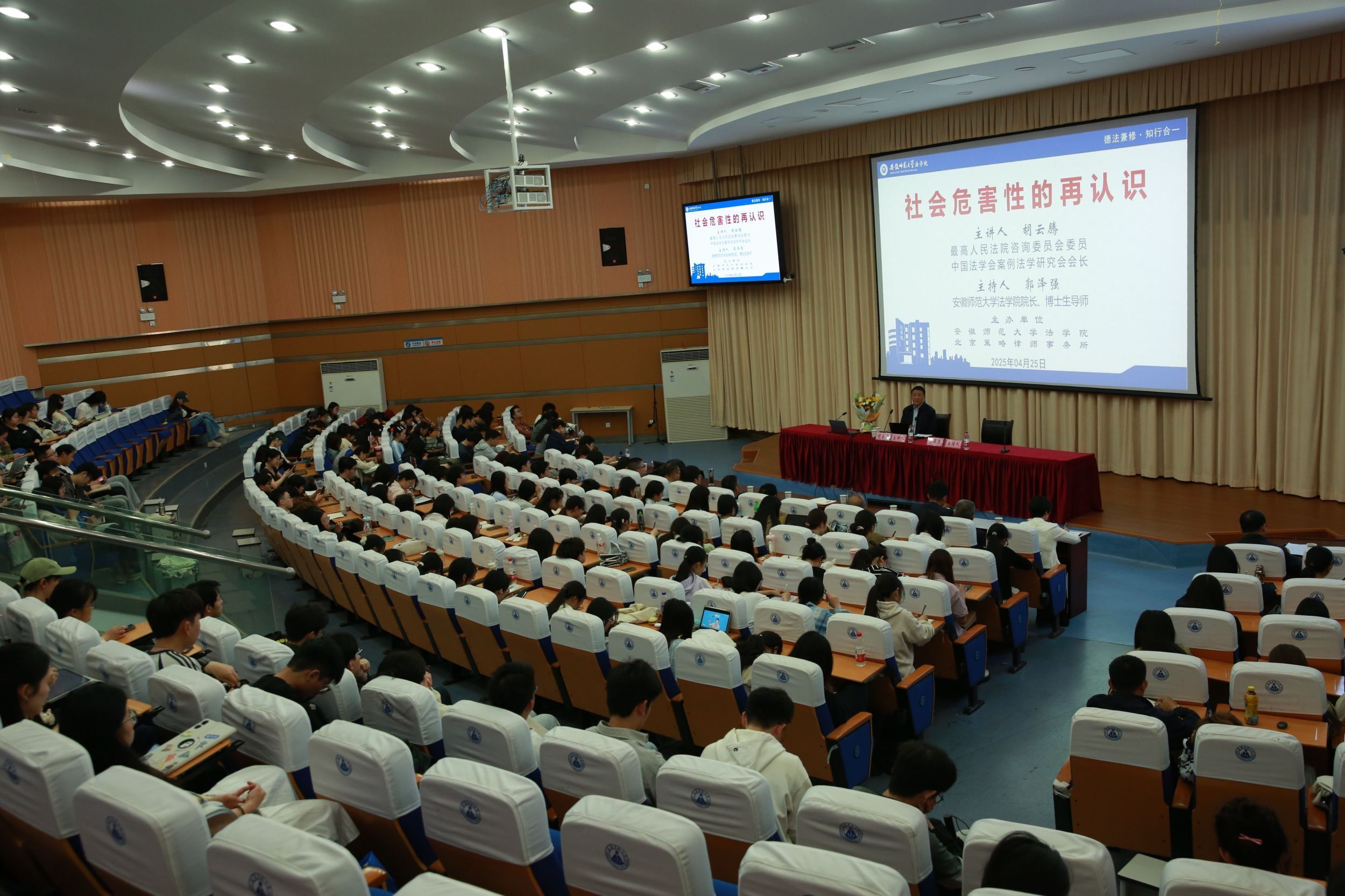 4月25日下午,安徽师范大学策略法学大讲堂第三十五期“社会危害性的再认识”专题讲座在赭山校区法学院模拟法庭举行。本次讲座特别邀请到最高人民法院咨询委员会委员、中国法学会案例法学研究会会长胡云腾教授担任主讲人,法学院院长郭泽强教授担任主持人,法学院师生和司法实务代表参加。