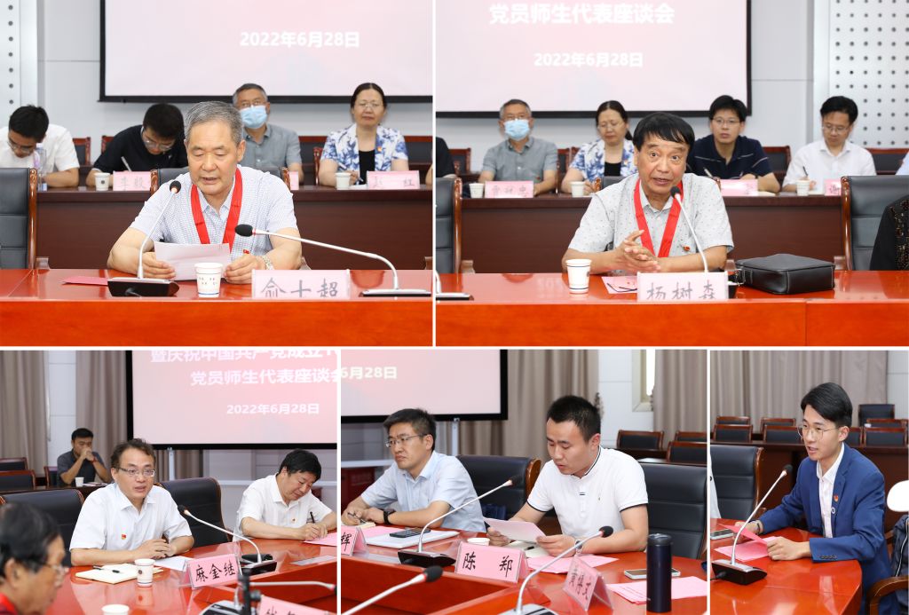 “作为一名老党员,在党爱党,知党恩、听党话、跟党走是我们终身不变的坚定信仰!”“光荣在党50年”老党员代表、继续教育学院原院长俞士超表达了对党忠诚和坚定信仰,号召全体党员师生弘扬“师大精神”,共同努力,建设更加美好的师大;“光荣在党50年”老党员代表、文学院退休教师杨树森分享了在党50年对自己产生重要影响的几件事情,寄语全体党员牢记中国共产党是什么、要干什么,始终坚定入党初心跟党走;省高校优秀共产党员、地旅学院教师麻金继以自己的实际工作经历分享了对学生教育培养的认识和体会,表达了诲人不倦、耕耘不辍的决心;教师新党员代表、化材学院陈郑讲述了自己入党思想变化历程,表示要以实际行动为培育现代化人才、服务地方经济社会发展作出应有贡献;学生新党员代表、校十佳大学生、2019级思想政治教育专业本科生黄博文讲述了担任班长和德育研究会会长期间组织开展“丙辉漫谈”等活动经历,倡议全体学生党员努力学习,积极工作,为成为担当民族复兴重任的时代新人不懈奋斗。