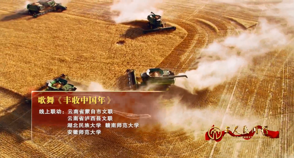 受主办方邀请,本次特别节目以“云上”录播形式进行,音乐学院精心组织安排,共遴选53名同学参与其中,承担四个节目的演出,分别为《到人民中去》《丰收中国年》《一起向未来》《领航》,演出得到主办方的高度赞誉。