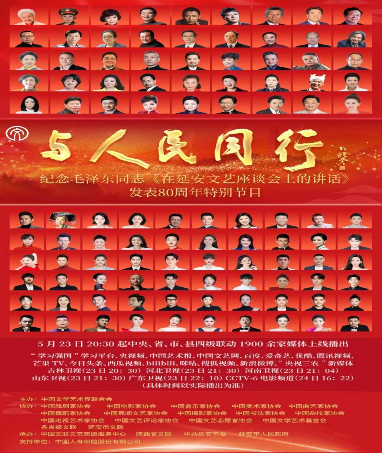 5月23日晚,由中国文联主办,中国文联文艺志愿服务中心承办,各全国文艺家协会和各省文联协办的“与人民同行”——纪念毛泽东同志《在延安文艺座谈会上的讲话》发表80周年特别节目在“学习强国"学习平台、央视频、中国文艺网、CCTV—6电影频道等中央、省、市、县四级1900余家媒体同步上线播出,我校学子继央视“五四”特别节目后再次精彩亮相,广受好评。