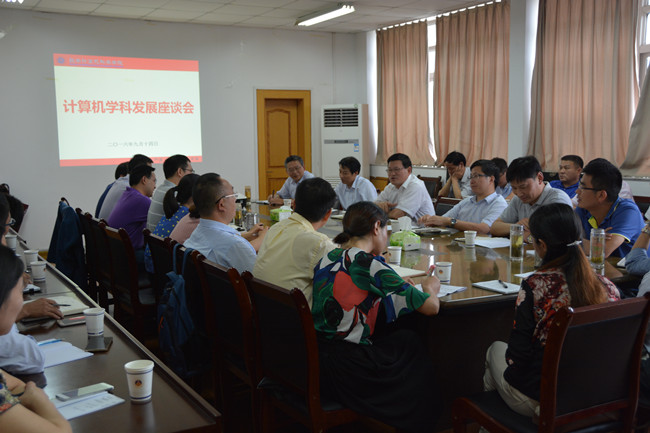 本网讯(数计学院 许晓峰)在学校新学期初各项工作安排就绪之后,9月14日下午,校党委书记顾家山带领学校办公室主任曾黎明、发展规划处处长王刚、人事处处长朱为民,深入数计学院,专题调研学校信息化建设和计算机学科发展,并与数计学院领导班子和部分教师进行座谈。数计学院党委书记陈树贤主持座谈会,学院领导班子全体成员、计算机学科副教授以上职称教师、博士、实验中心主任(副主任)参加了座谈会。