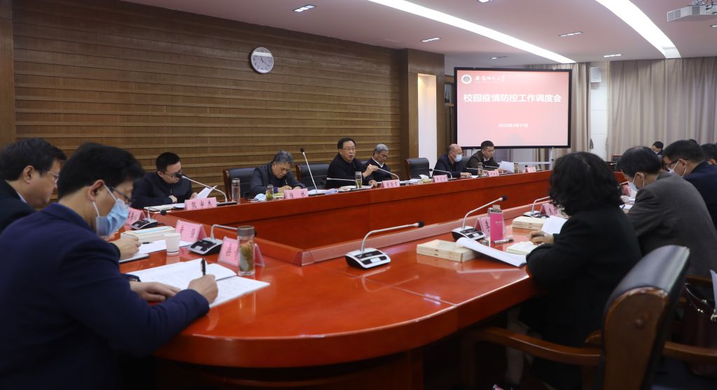 陆林在主持会议时指出,全校上下要提高政治站位,认清当前严峻形势;要坚持疫情防控底线,保障校园健康安全稳定;要严格落实疫情防控举措,完善工作方案、改进工作方法,确保校园不出现疫情。