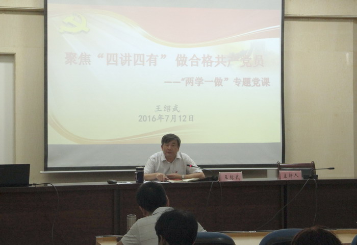 本网讯(发展规划处 陈刚锋 孙彦)7月12日,副校长王绍武为分管、代管和联系的相关部门、学院共9个单位的党员作了一场题为《聚焦“四讲四有” 做合格共产党员》的专题党课,要求师生党员切实增强党性意识,激发干事创业的活力。党课由发展规划处处长王刚主持。