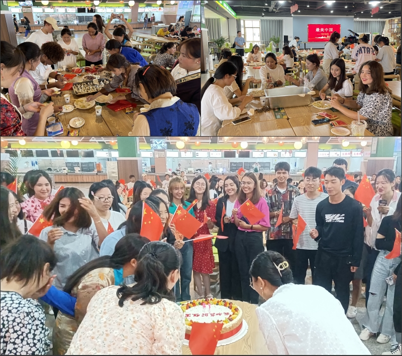 为国庆生,点赞祖国发展的繁荣昌盛。作为中国民族传统美食,饺子承载着吉祥如意的美好意愿。同学们挽袖洗手,合理分工,擀皮包馅,在欢愉的气氛中创作美食作品。同学们一边包饺子,一边交流饺子文化与传统习俗,从开始的稍显稚嫩,到逐渐得心应手,同学们在不断尝试中掌握了包饺子的要领。在师生的共同努力下,一碗碗热气腾腾的饺子被端上餐桌。同学们品尝着自己劳动的成果,脸上绽放出满意的笑容。来自新疆维吾尔族的努尔比亚同学说:“大家就像一家人,聚在一起包饺子,既是共享美味,也是共享温暖。”一首首红色歌曲响彻耳边,一面面红旗在手中飞扬,在场的师生齐声高歌,为祖国母亲庆生。他们用嘹亮的歌声为祖国的繁荣昌盛点赞,用最真挚的深情献上对祖国和党最美好的祝福。