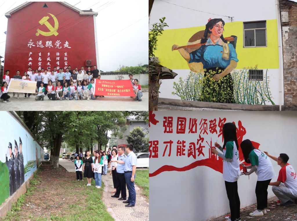 “同学们涂色、投影、打形,每天工作8小时以上,忍受蚊虫叮咬,用汗水诠释了志愿服务精神。” 茂林镇沈岗村党总支书记凤诵梅说。美术学院志愿者赴革命老区泾县完成了1500余平米的创意墙绘。学院组建“党员先锋队”走进九成监狱管理分局,历时十余天,完成“社会主义核心价值观”“军营文化”等版块主题教育墙画,得到该分局民警职工和过往群众交口称赞。恰逢建党百年,受多地政府邀请,美术学院学院先后组建8支团队、100余名师生共赴偏远山区、革命老区、四川民族地区等地,历时20余天,绘制乡村文化墙3000余平米,用专长服务社会,为美丽乡村增靓,为乡村振兴打底,将所学的知识贡献给乡村振兴事业,用艺术实践彰显中华美育精神。