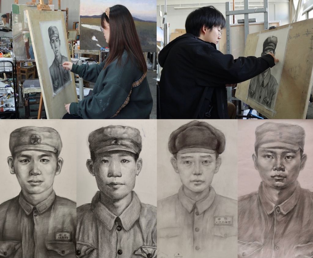 美术学院接力开展“迎接建党百年,为百位烈士画像”大型公益活动,该活动由2007年感动中国年度人物孟祥斌烈士的遗孀叶庆华女士推荐参与。六名学生党员积极响应,主动报名。经过与烈士家属反复沟通与打磨,历时半个月,最大程度地还原革命烈士画像四幅,让英雄烈士们不再只是证书上的一个名字,不再只是简介里的寥寥数语,让青年大学生看清革命烈士的模样。“我们很感谢安徽师范大学美术学院的师生,让我姑姑看到了她哥的模样,我们也看到叔叔的模样了,真的很感谢你们,你们辛苦了!”宋连恒烈士的家属说。