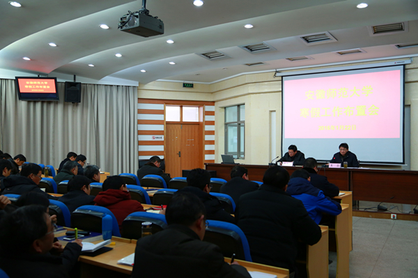 本网讯(党委宣传部 张鑫) 1月22日下午,学校召开寒假期间工作布置会,校党委书记顾家山主持会议,校长王伦对寒假期间工作进行了布置。校纪委书记程度,各部门、各单位主要负责同志参加会议。