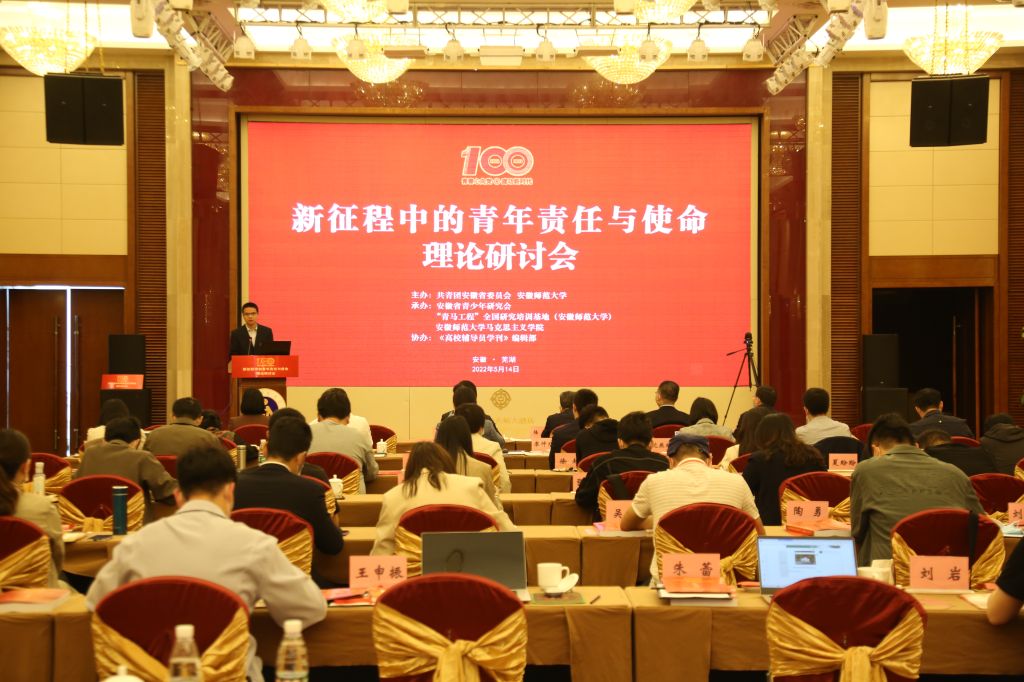 5月14日,由共青团安徽省委员会、安徽师范大学共同主办,安徽省青少年研究会、“青马工程”全国研究培训基地(安徽师范大学)、安徽师范大学马克思主义学院承办,《高校辅导员学刊》编辑部协办的“新征程中的青年责任与使命”理论研讨会在安徽芜湖成功举办。中央团校党委副书记、常务副校长陆玉林,共青团安徽省委副书记李波,校党委常委、副校长陆林,校党委常委、宣传部部长胡靖以及 “青马工程”全国研究培训基地(安徽师范大学)首批师资库专家、全国各地青年工作研究专家学者500余人通过线上线下相结合的方式出席会议。研讨会开幕式由校团委书记汪凯主持。