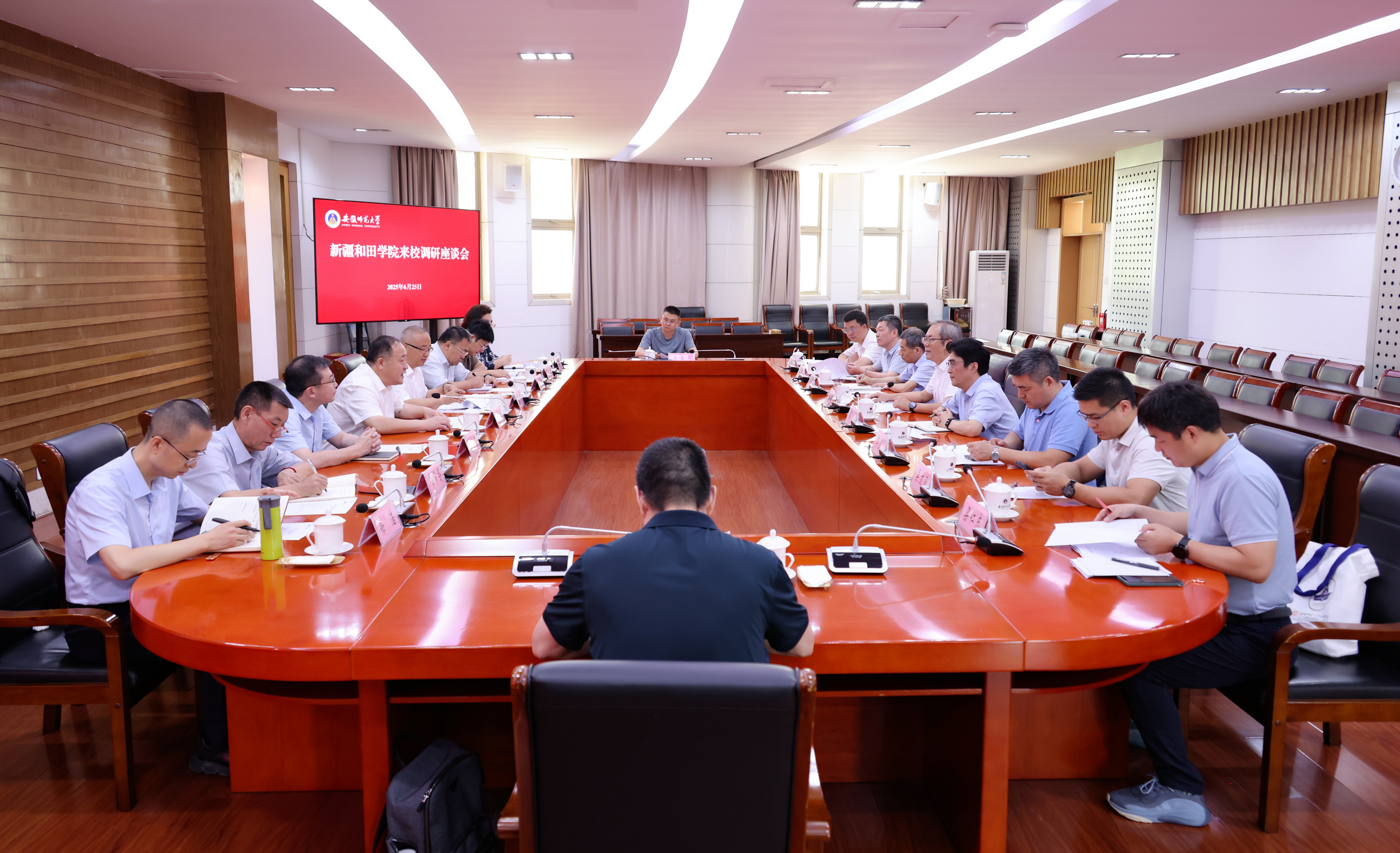 6月25日,新疆和田学院党委书记季峰,党委常委、副院长秦伟,党委常委、组织部部长夏文熠一行来校调研交流。校党委书记蒋家平,校党委常委、副校长高峰,校党委常委、组织部部长朱为民,学校办公室、发展规划处、人事处、科研处、教育科学学院负责同志参加座谈。
