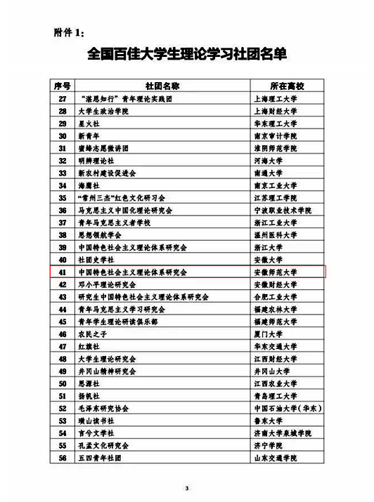本网讯(马克思主义学院 王慧楠)12月31日,团中央学校部通过官方微信公共平台公布全国大学生百佳理论学习社团名单,经过各地遴选推荐、网络平台展示、公开投票、差额评定,并展开向全国高校公示,马克思主义学院中国特色社会主义理论体系研究会成功入选全国大学生百佳理论学习社团。