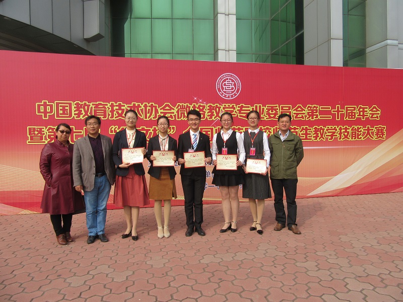 本网讯(生科院)10月20日至22日,由中国教育技术协会微格教学专业委员会主办的第七届“华文杯”全国师范院校师范生教学技能大赛在山西师范大学举行。生命科学学院选派的生物科学专业2014级陈颖、2015级陈兵、梅杰、谢菁、姚缘圆等5名同学在指导教师陈明林、韩菲的悉心指导下,经过教学设计、说课、模拟授课、现场答辩等环节的激烈角逐,表现出色,一举收获2个特等奖、6个一等奖、2个二等奖。其中,在教学设计评比中姚缘圆同学荣获特等奖,其余同学均获一等奖。在教学技能大赛中梅杰同学荣获特等奖,其余同学获得一等奖或二等奖。生物科学专业负责人陈明林、韩菲老师获优秀指导教师奖,陈明林还应邀担任大赛评委。