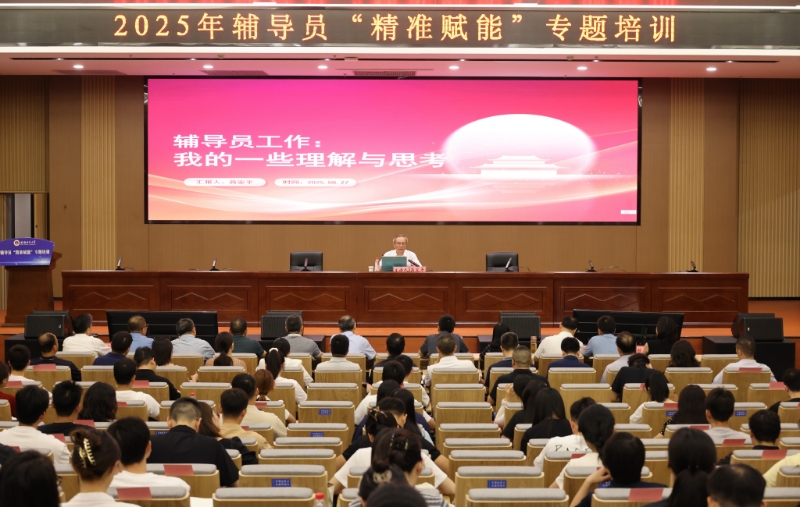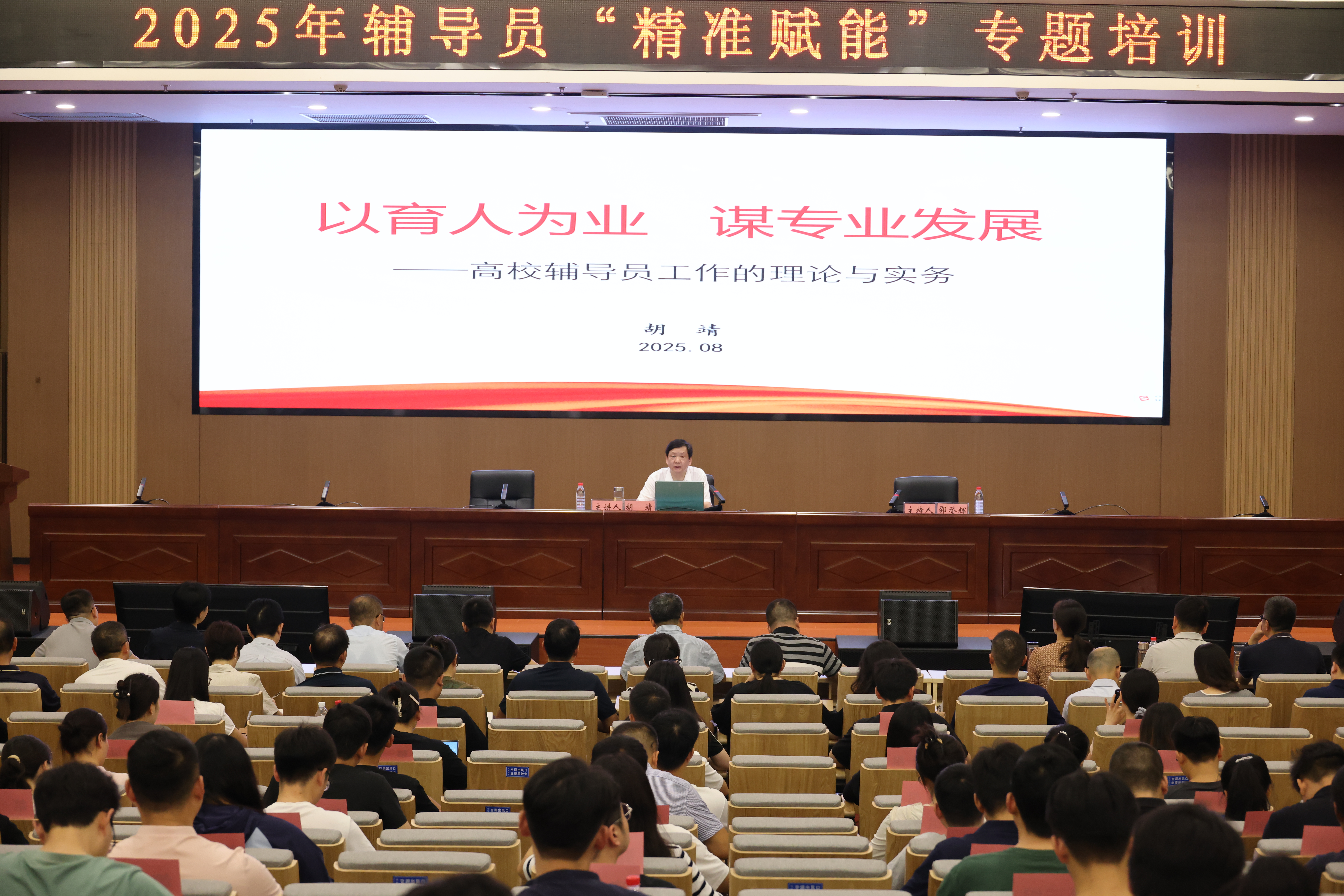 为全面提升辅导员队伍的专业素养和履职能力,8月25日至29日,学校组织开展2025年辅导员“精准赋能”专题培训班,校党委书记蒋家平、党委副书记胡靖、华中师范大学教授吴才智等领导专家为培训班授课,各学院分管负责人、全体专兼职辅导员及相关职能部门人员参加此次培训。
