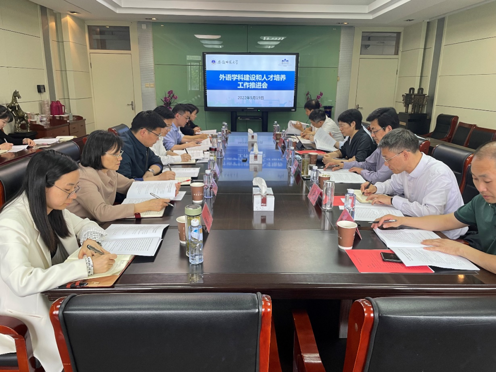 5月19日下午,副校长彭凤莲带领发展规划处、人事处、教务处、研究生院、国际交流合作处、财务处等部门负责人,到外国语学院召开外语学科建设和人才培养工作推进会,外国语学院领导班子参加会议。会议由彭凤莲主持。