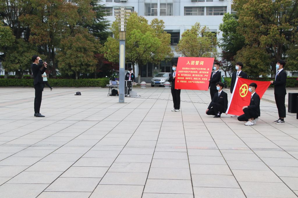 经管学院2020级金融工程专业本科生张青云同学带领大家进行重温入团誓词宣誓,同学们面向团旗、高举右拳,铿锵有力的宣誓词在敬文图书馆广场激扬回荡,点燃了同学们强烈的爱国热情。