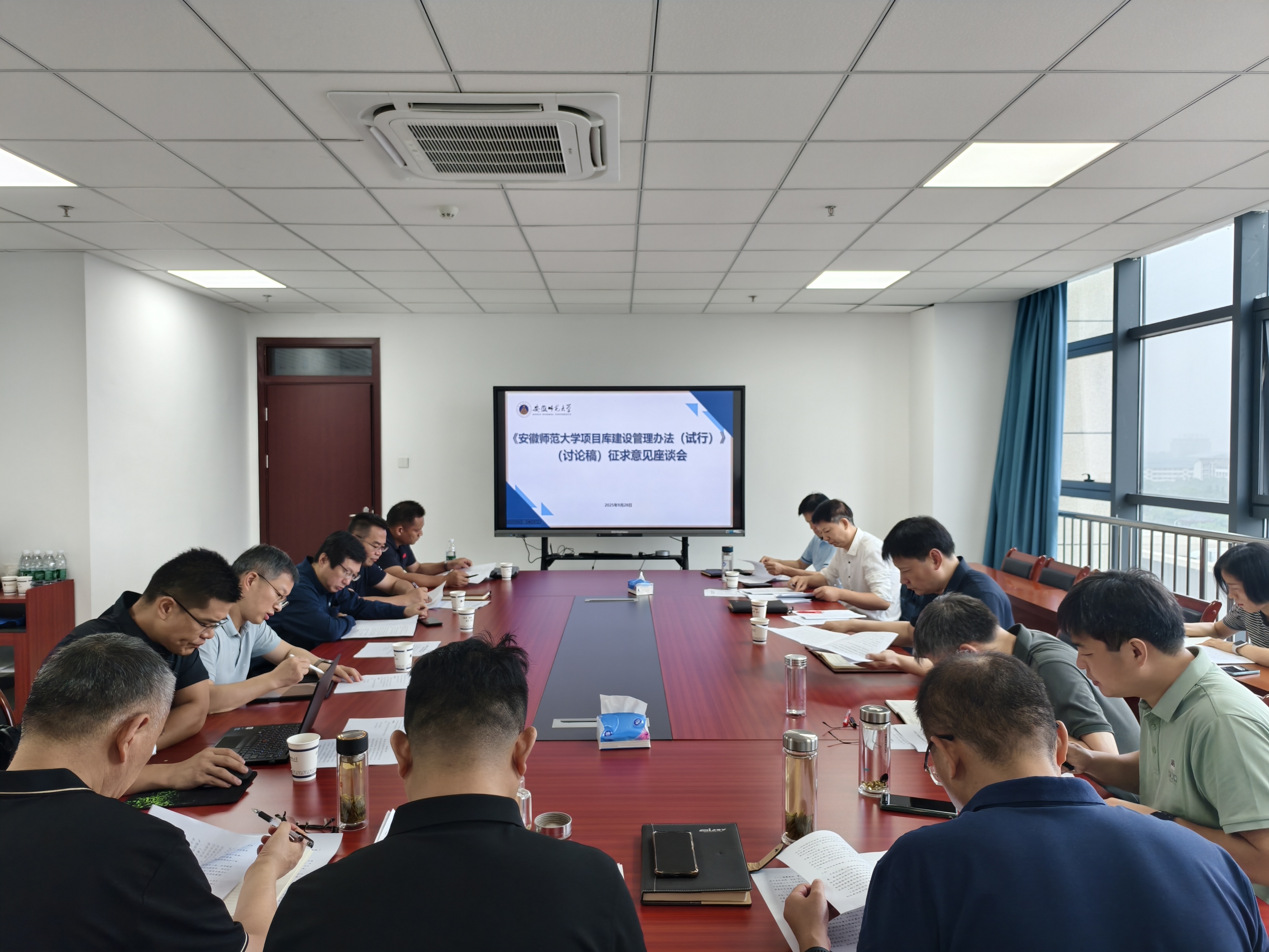 规范管理,集思广益完善制度“防火墙”。组织《安徽师范大学项目库建设管理办法(试行)》征求意见座谈会,与会人员结合工作实际,围绕项目分类与归口管理、项目入库出库程序、项目绩效管理等展开讨论,提出了具体的修改意见和建议。