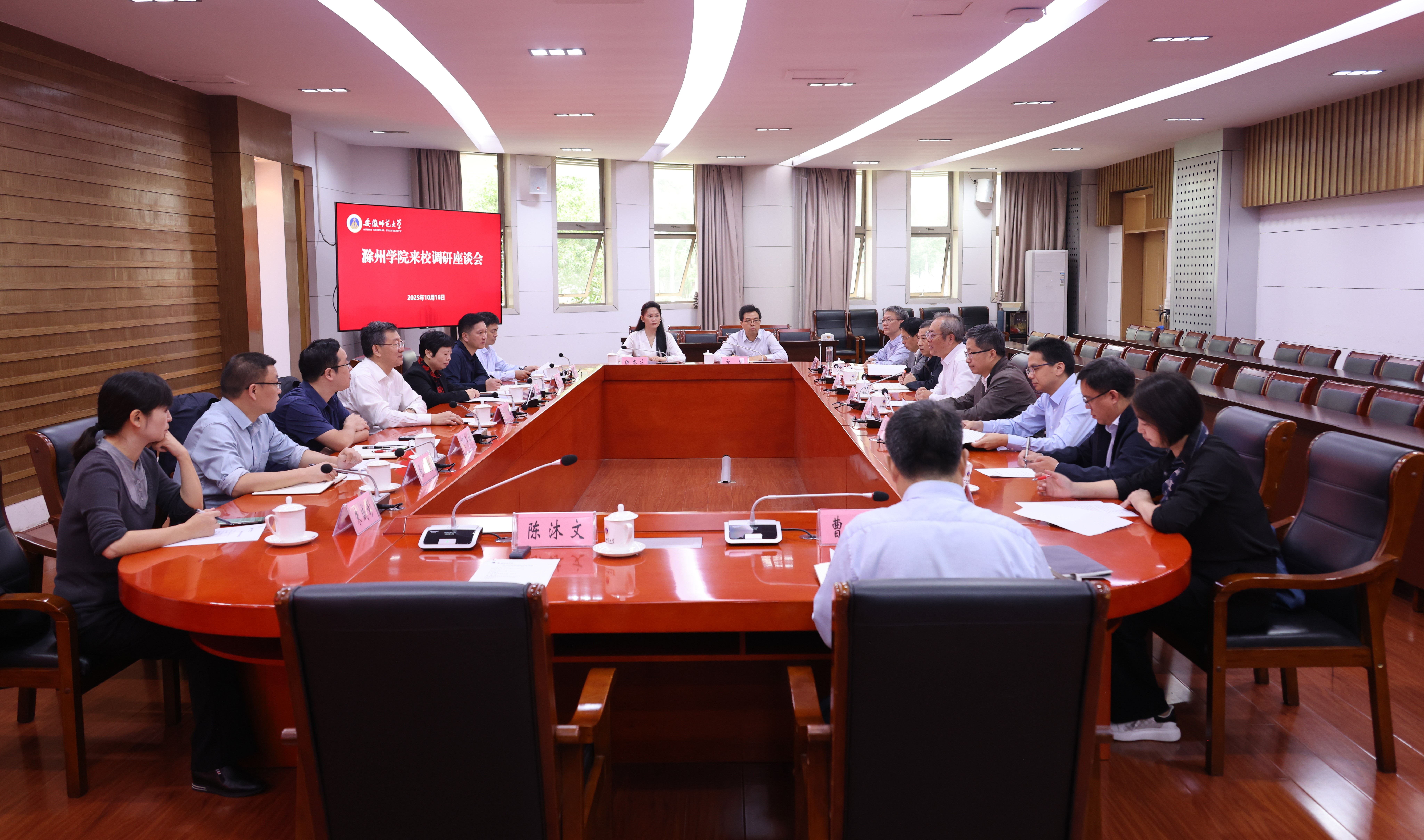 10月16日,滁州学院党委书记周旭,党委副书记张敏,党委常委、组织部部长丁荣祥,党委常委、宣传部部长孔令十一行来校调研交流。校党委书记蒋家平,校党委副书记曾黎明,校党委常委、组织部部长朱为民,学校办公室、宣传部、统战部、发规部、人事处、本科生院、科研部相关负责同志参加座谈。