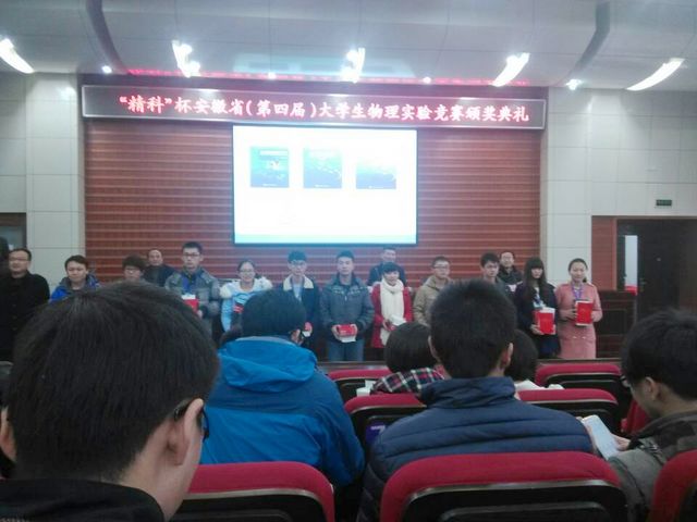 本次竞赛由安徽省物理学会主办,黄山学院承办,旨在激发大学生学习大学物理实验的积极性,培养学生创新思维与创新能力,提高学生运用大学物理实验知识解决实际问题的能力。来自合肥工业大学、安徽大学、安徽工业大学等24所本科院校共96名选手参加了竞赛。比赛分为光学和电学两场,从实验设计、实验操作、数据处理和误差分析等方面对学生进行实验技能的全面考核。由崔光磊、冯霞两位老师指导的2013级物理学专业张良、蔡亚芬以优异的成绩荣获一等奖,崔婷婷、高超荣获二等奖。
