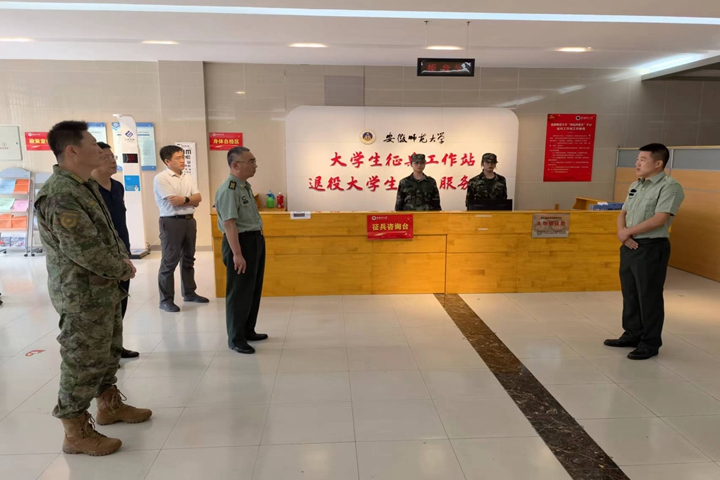 9月22日上午,省军区动员局副局长、省征兵办副主任杨钧,芜湖市军分区副司令员、市征兵办主任王海波,镜湖区人武部政委姚林江、省军区动员局参谋辛雷等来校调研“两站两服务”平台建设情况。我校党委人武部部长邵登辉陪同调研。
