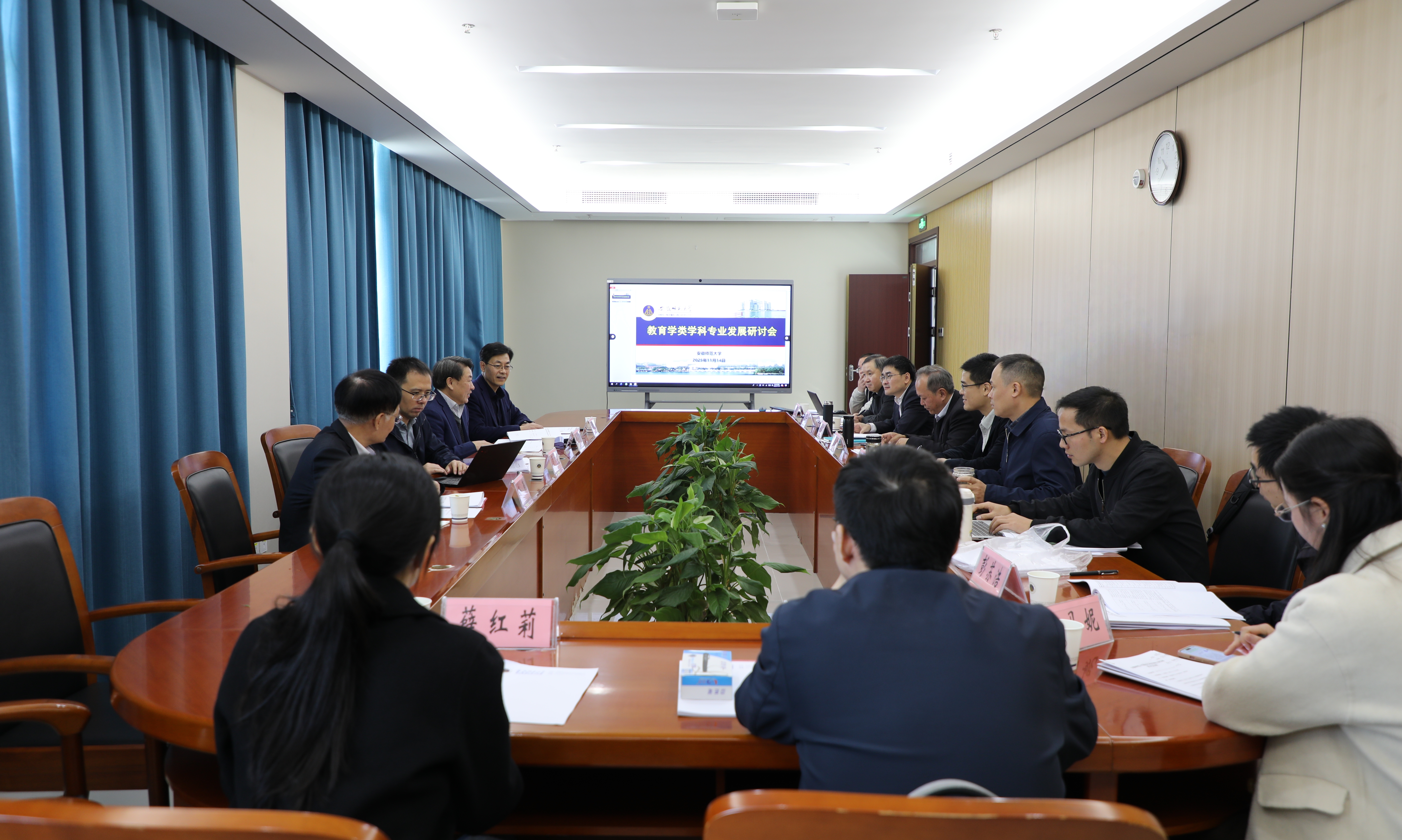 期间,与会人员参观了“京皖携手育英才 协同提质谱新篇”校地合作成果展示,详细了解京皖两地在师范教育协同、基础教育服务等领域的合作成效,并实地调研了中国诗学中心(文学院)。当天,还同步举办了基础教育质量监测座谈会、教育学类学科专业发展研讨会、花津大讲堂、教育评估评价学术报告会等系列活动,相关专家学者围绕学科专业发展、教育质量提升等主题开展交流研讨,为合肥中心未来发展与安徽基础教育提质贡献智慧。