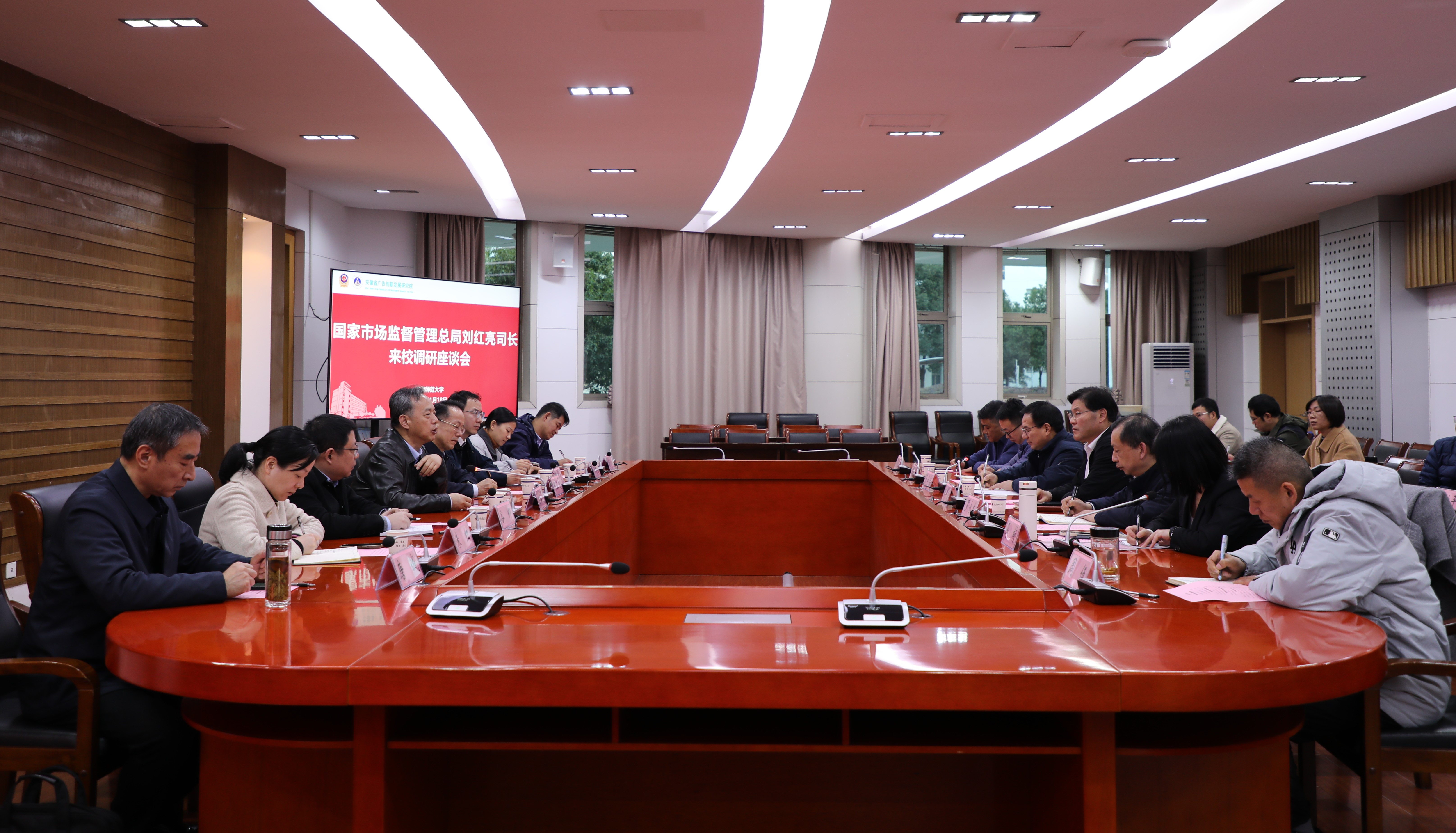 11月18日下午,国家市场监督管理总局广告监督管理司司长刘红亮一行来校调研安徽省广告创新发展研究院共建工作,听取安徽省广告创新发展研究院专题汇报。国家市场监督管理总局广告监督管理司综合处处长张宇光、监测处处长谷卿,安徽省市场监督管理局副局长何汉翔,安徽省市场监督管理局广告监督管理处处长朱红,芜湖市市场监督管理局局长唐诚等陪同调研。校党委常委、副校长田兴友,科研部部长罗永龙,新闻与传播学院领导班子、广告学专业教师代表参加会议。会议由新闻与传播学院党委书记聂全高主持。