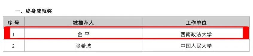 近日,第四届“韩德培法学奖”评选结果公布,我校杰出校友、著名民法学家、西南政法大学金平教授(曾用名金以治)荣获“韩德培法学奖”终身成就奖。