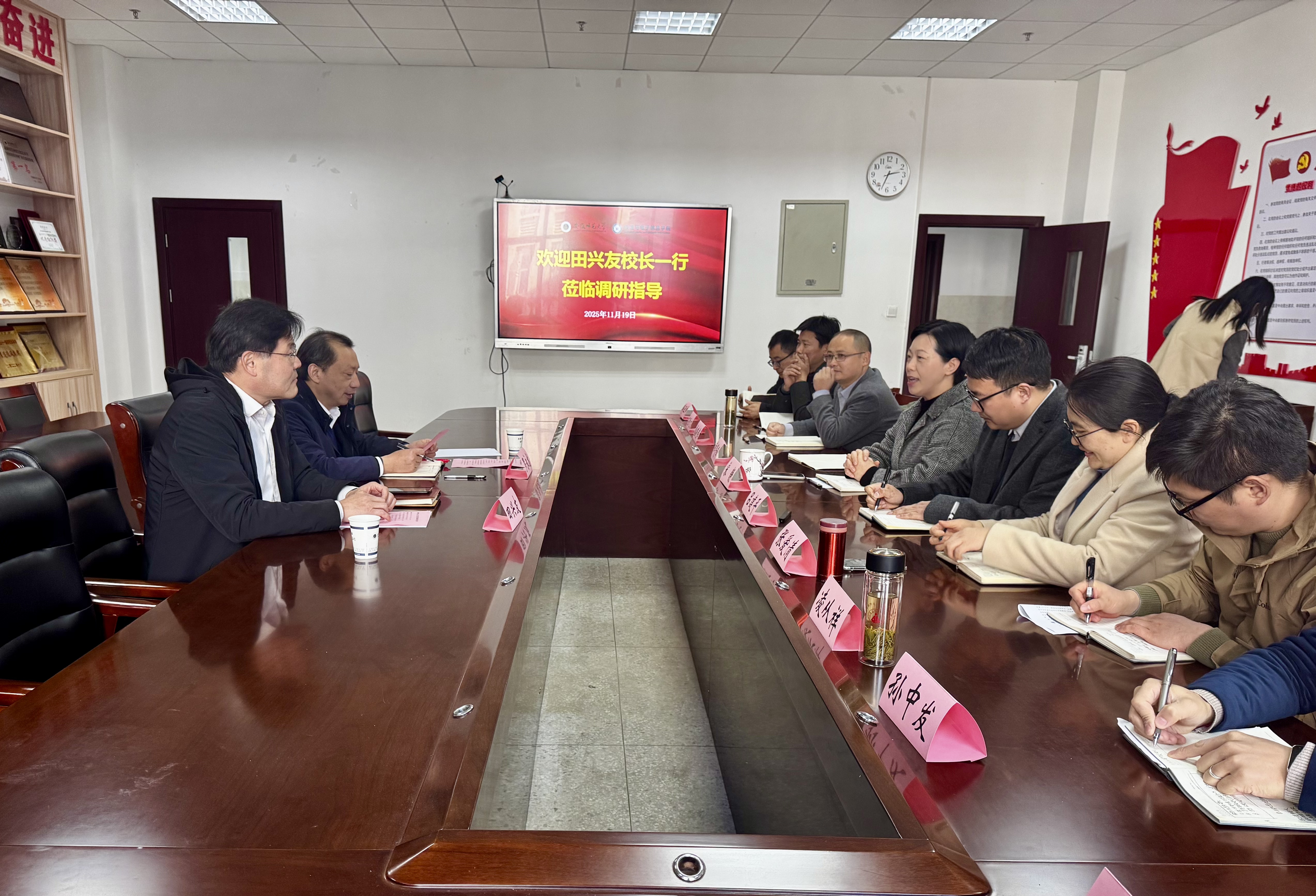 11月18日,校党委常委、副校长田兴友赴计算机与信息学院调研指导工作。党委组织部副部长李高举,计信学院领导班子成员参加调研汇报会。会议由学院党委书记张园园主持。会上,院长接标围绕学院发展历程、师资队伍建设、人才培养、科学研究、服务保障、当前存在的困难与不足以及“十五五”事业发展规划等方面作了全面汇报。他指出,学院近年来持续优化学科布局,深化产教融合,各项工作稳步推进,但在高层次人才引育、资源整合效率等方面仍有较大提升空间。听取汇报后,田兴友对学院在人才培养、科学研究、学科建设等方面取得的成效表示充分肯定。他强调,要深入贯彻落实党的二十届四中全会精神、省委决策部署和学校第十二次党代会精神,进一步提高政治站位,强化统筹协调与服务意识,科学谋划并扎实推进学院“十五五”规划编制与实施。要加强与学校相关部门与芜湖市政府企业沟通协调,凝聚发展合力;要加大高层次人才引进与培育力度,构筑人才高地;要优化学科布局,推动学科交叉融合与特色发展,不断推动学院事业高质量发展。