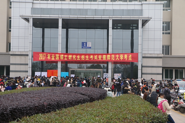 本网讯(研究生院 于珊珊)2017年全国硕士研究生招生考试于12月24日—25日举行。作为安徽省考点之一,我校考点共接收5657名考生,设置考场194个。考点各项工作按部就班,工作人员尽职尽责,考场秩序井然,实现了连续15年考点工作无差错的优异记录。
