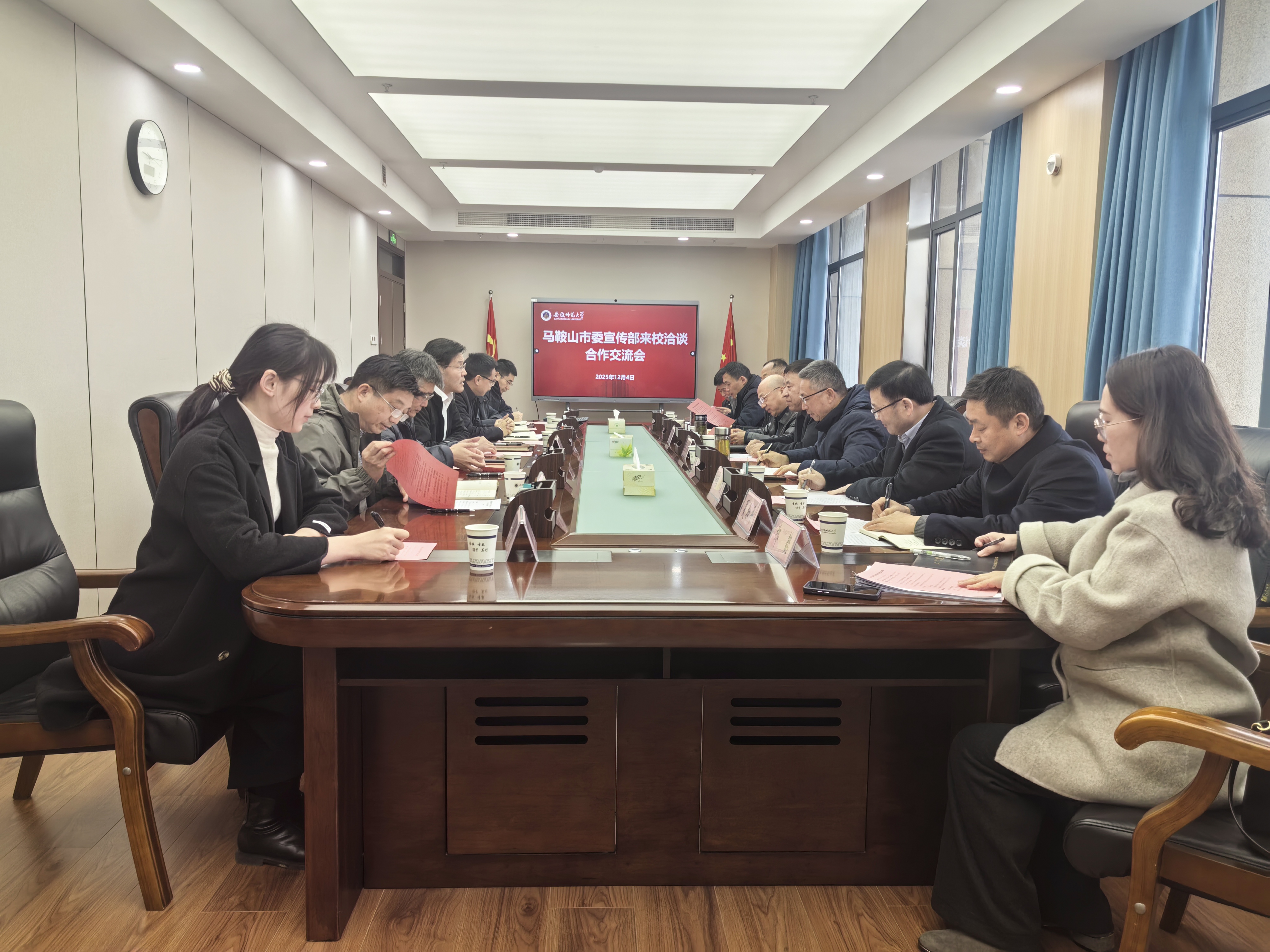 12月4日,马鞍山市委常委、市委宣传部部长陈永红一行来校,就深化长江文化、李白文化研究校地合作事宜开展专题座谈交流。校党委常委、副校长田兴友,宣传部常务副部长汪凯,文学院院长项念东,学校办公室副主任熊伯能,科研部副部长韩家炳及双方工作人员参加了会议。会议由田兴友主持。