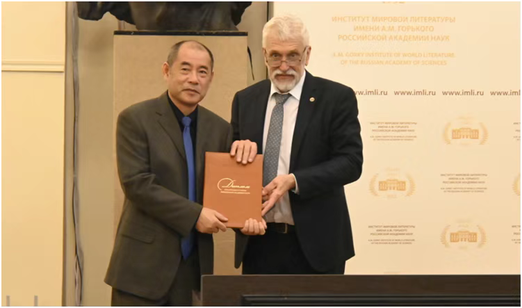 俄罗斯科学院历史与语文学部主任马卡罗夫为刘文飞教授颁发院士证书