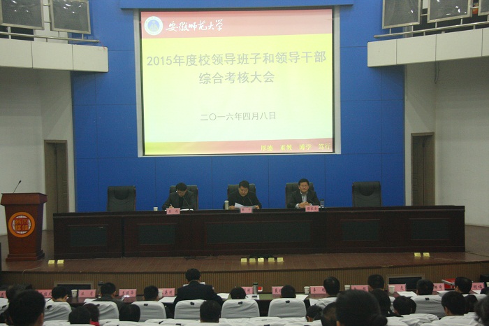 顾家山代表学校领导班子汇报了2015年度学校党建工作和事业发展情况。他说,2015年,在上级领导和主管部门的关心和支持下,学校领导班子主动适应全面从严治党新要求、经济发展新常态、高等教育新形势,深化内涵建设,事业发展水平得到新提升,在推进依法治校、综合改革、人才培养、科学研究、社会服务、文化传承创新、创新创业教育服务等方面都取得了新进展、新成效;全面从严治党,思想政治保障得到新加强,理论武装、意识形态工作、领导班子和干部、人才队伍建设,党建工作责任制、党风廉政建设,统战、群团和安全稳定工作,基层党组织战斗堡垒作用等方面都得以深化和加强。顾家山表示,学校将深入贯彻落实中央和省委要求,以“五大发展理念”为引领,不断开创高水平大学建设新局面,为打造创新型“三个强省”和“美好安徽”建设做出新贡献。