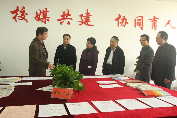 (图为考核组实地查看新闻与传播学院学科建设)