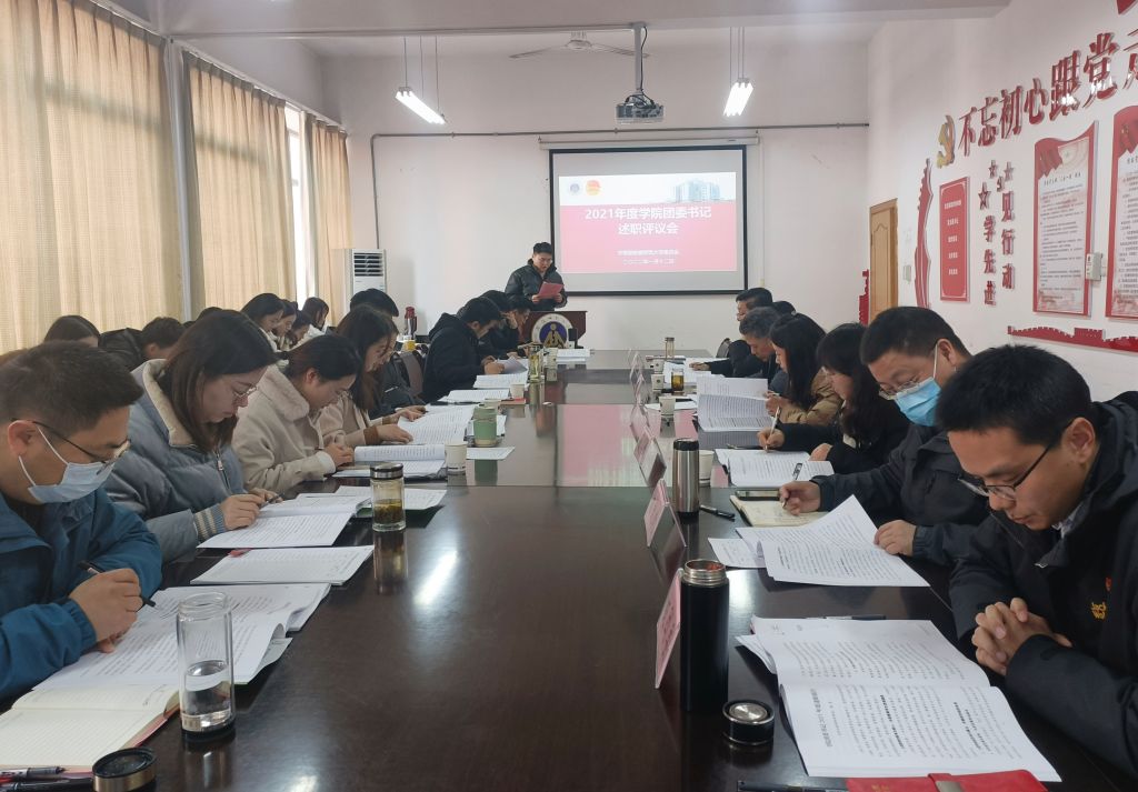 会上,马院、经管学院、美术学院、教科学院、外语学院、计信学院、化材学院、生科学院、生环学院等9个学院团委书记进行了现场述职,其余10个学院团委书记书面述职。各学院团委书记对本学院2021年度共青团工作进行总结回顾,紧扣引领凝聚青年、组织动员青年、联系服务青年等基本职责落实情况,总结工作成效,分析存在问题,并就2022年工作安排进行了汇报。汪凯对述职情况进行现场点评。与会人员就各学院团委书记履职情况进行了测评评议。