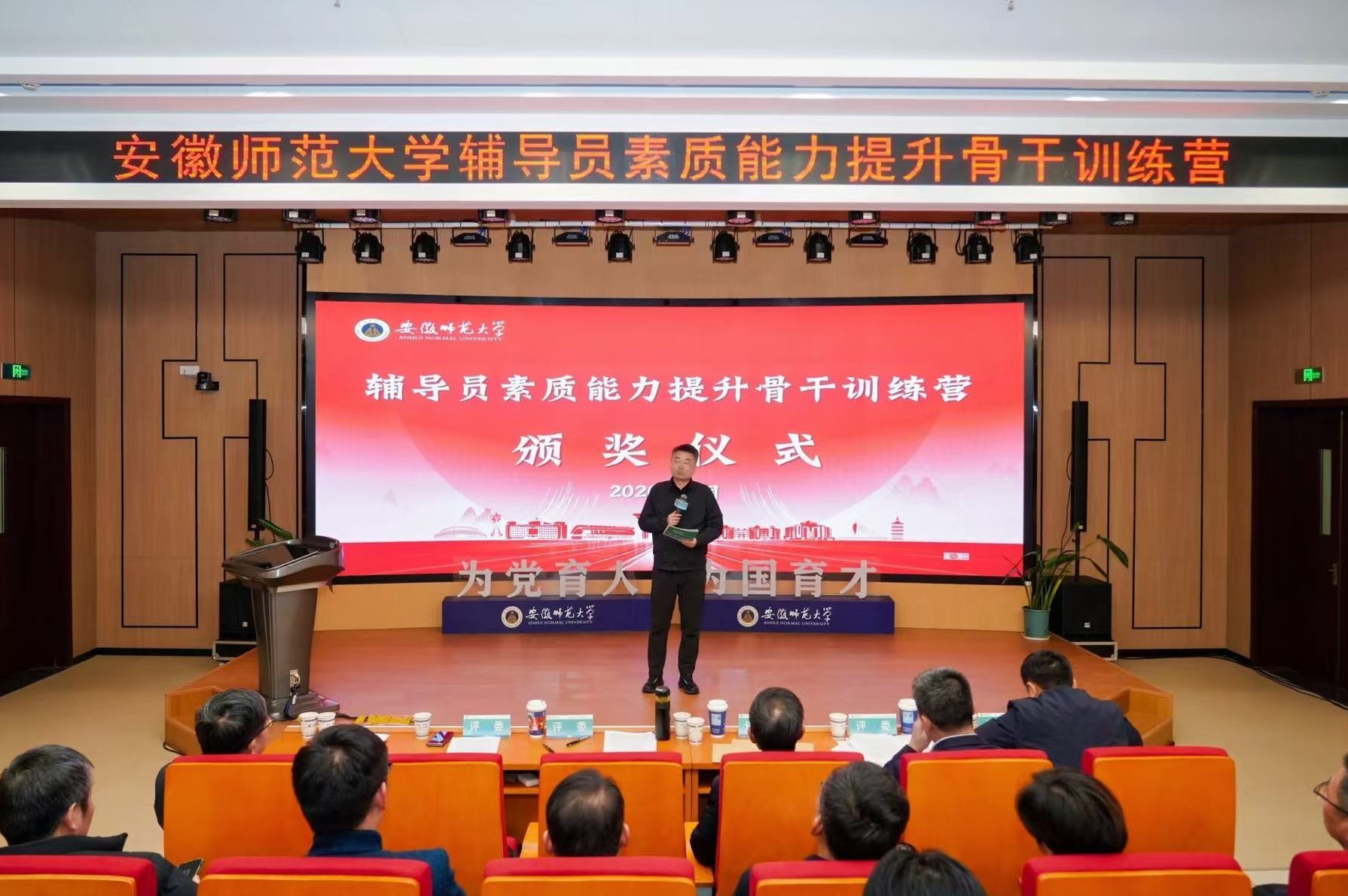 本次辅导员素质能力提升骨干训练营,既是一次全方面的能力“大练兵”,也是对辅导员队伍建设成效的“大检阅”,更成为推动学校思想政治教育高质量发展的“新引擎”。未来,学校将持续深化“以赛促学、以训促建、以评促优”机制,不断完善辅导员成长支持体系,紧扣大学生护航行动计划,引导辅导员深耕主责主业、下沉学生一线,以务实举措开展思想引领、成长陪伴与服务保障工作,为安师大学子的健康成长成才保驾护航,为培养堪当民族复兴大任的时代新人筑牢育人防线。