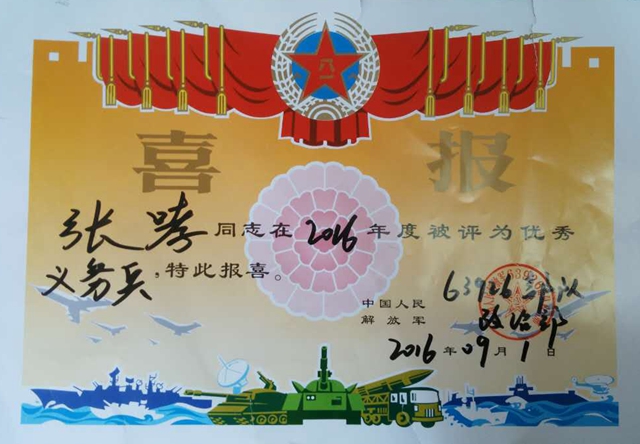 本网讯(人武部孙良林) 近日,我校人武部接到中国人民解放军63926部队政治部发来的喜报,表彰我校2015年9月应征入伍的2012级文化产业管理专业张欢、2012级财务管理专业张哮两名参军入伍学生,授予他们2016年度“优秀义务兵”荣誉称号。
