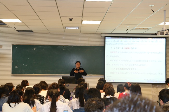 本次授课的主题是“学前儿童自我意识的发展”,课程从“自我意识”的概念讲起,梳理了“自我意识”的结构,结合实例分别讲述了学前儿童自我认知、自我体验、自我控制发展的年龄特征。讲述过程中,桂老师通过概念界定、现象描述和解释重点剖析了学前儿童自我认知的特点和自我情绪体验中的自尊,并用新鲜生动的实例介绍了自我认知与自我体验间的关系,整节课如同缓缓铺开一面画卷,清晰地描绘了学前儿童自我意识发展的趋势与特点。桂老师在本节课的教学设计上层层展开、循序渐进,教学语言上风趣幽默、张弛有度,教学内容上理论联系实际、利用生活中的实例引导学生思考、加深记忆,调动了学生学习的主动性和积极性。