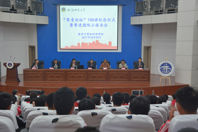 本网讯(数计学院 方龙祥、王程) 10月25日下午,数计学院在花津校区敬文图书馆国际学术报告厅隆重举行“零壹论坛”100讲纪念仪式暨曹进德院士报告会。欧洲科学院院士、东南大学数学学院院长曹进德、副校长朱家存、校办公室主任曾黎明、校教授委员会主任祝东进、数计学院领导班子成员,以及师生代表400余人参加仪式。仪式由院党委书记陈树贤主持。