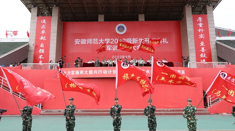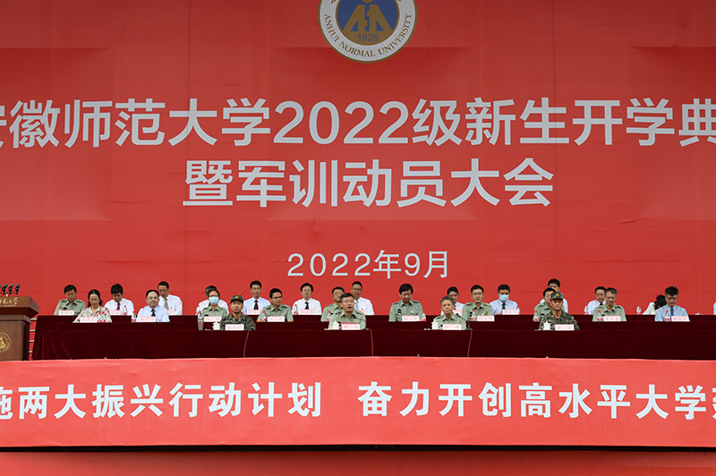 9月24日上午,学校2022级新生军训动员大会在花津校区田径场召开。校党委副书记周旭,校党委常委、副校长陆林,武警芜湖支队上校政委张建明、少校副参谋长汪洋,学校军训领导组全体成员,各学院主要负责人、分管负责人出席大会。大会由周旭主持。全体2022级本科生辅导员和本科新生参加大会。