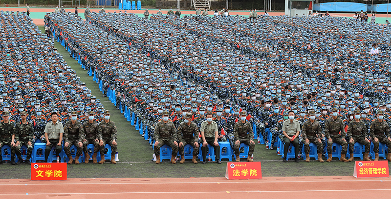 据悉,我校今年共有8050名本科新生参加军训,成立校军训工作领导组,设立军训旅序列编制,下辖4个团,19个营,70个连,对军训工作做了精心准备和周密安排。军训工作已于9月16日正式启动,计划在9月30日结束,历时14天,包括条令学习、队列训练、内务整理、特战训练、校歌军歌学唱、急救知识教学等内容。