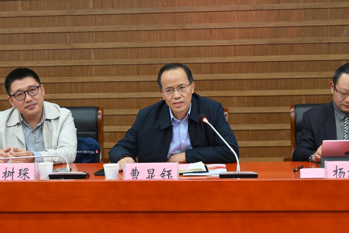 仪式前,校党委副书记蒋家平与曹显钰一行就大学生时评组发展和思政育人工作进行了交流探讨。