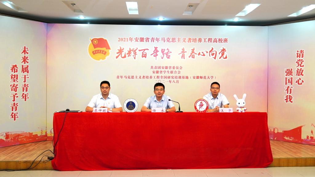 青通社讯(宁嘉惠) 8月27日上午,2021年安徽省青年马克思主义者培养工程高校班正式开班。本期培训班由团省委、省委教育工委、省学联主办,由马克思主义者培养工程全国研究培训基地(安徽师范大学)承办,因疫情防控需要,本期开班式及培训均通过网络形式线上进行。团安徽省委副书记胡靖,安徽师范大学校党委常委、副校长任永出席开班式并讲话。团安徽省委学校部、安徽师范大学团委负责同志以及来自全省119所高校的196名大学生骨干代表齐聚“云端”参加开班式。开班式由团省委学校部副部长杜盛主持。