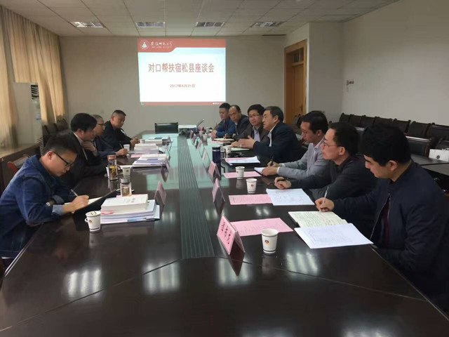 会上,我校选派驻村干部宿松县凉亭镇三德村第一书记、扶贫工作队队长李靖宇汇报了2017、2018两年三德村的扶贫工作任务和计划。杨文龙介绍了自2014年我校开展对口帮扶宿松县工作以来,三德村取得的显著成效,对我校的扶贫工作表示感谢,并说明了目前三德村扶贫工作的现实需求和实际困难。与会人员结合部门工作、专业特色等,就特色农产品种养植技术指导、乡村旅游规划设计、“一村一品”农副产业打造等方面,进行了讨论研究,并明确了将于近期组织专业队伍赴三德村进行实地考察。