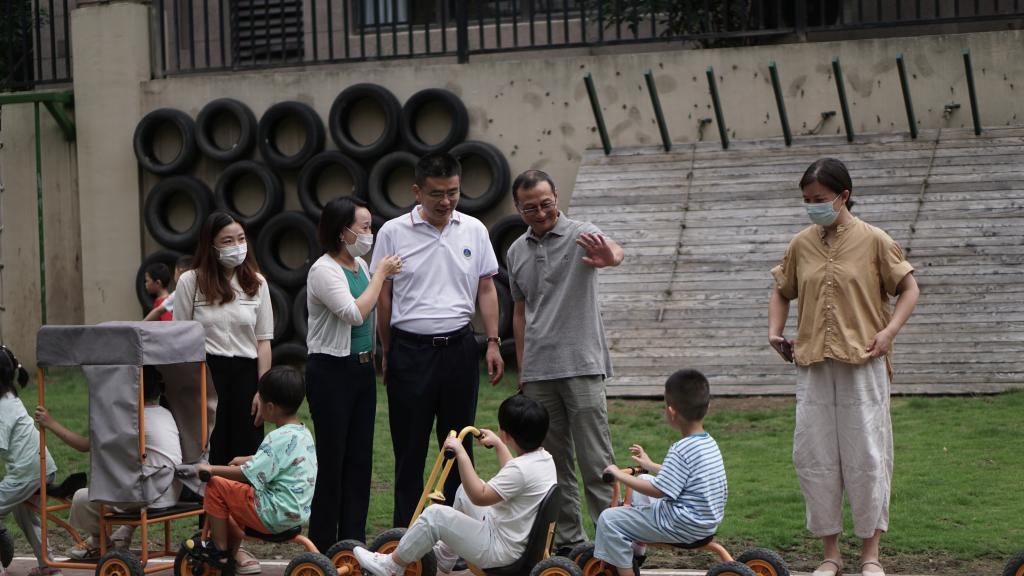 任永一行实地察看了幼儿园户外环境、活动室、各功能室、厨房等环境设施,听取了幼教集团各园在防疫常态化背景下,秋冬季开学工作方案制定、防控措施等工作落实情况的汇报,并走进教室,看望正在晨谈的孩子和老师们,同他们亲切交流。
