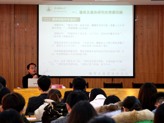 仪式结束后后,李琳琦为学员们带来培训班第一讲《徽商和徽商精神漫谈》。他强调,徽商及其孕育的徽商精神和徽文化是中国优秀传统历史文化的重要组成部分。讲座内容包含徽商及徽商研究回顾、为什么要研究徽商、徽商精神的总结和凝练等方面,理论内涵深刻,讲述活泼生动,广大同学受益匪浅。