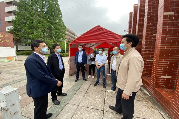 4月26日上午,芜湖市委副书记、政法委书记张庆亮,市教育局党委书记、局长章世海一行来到附属中学检查复学工作。